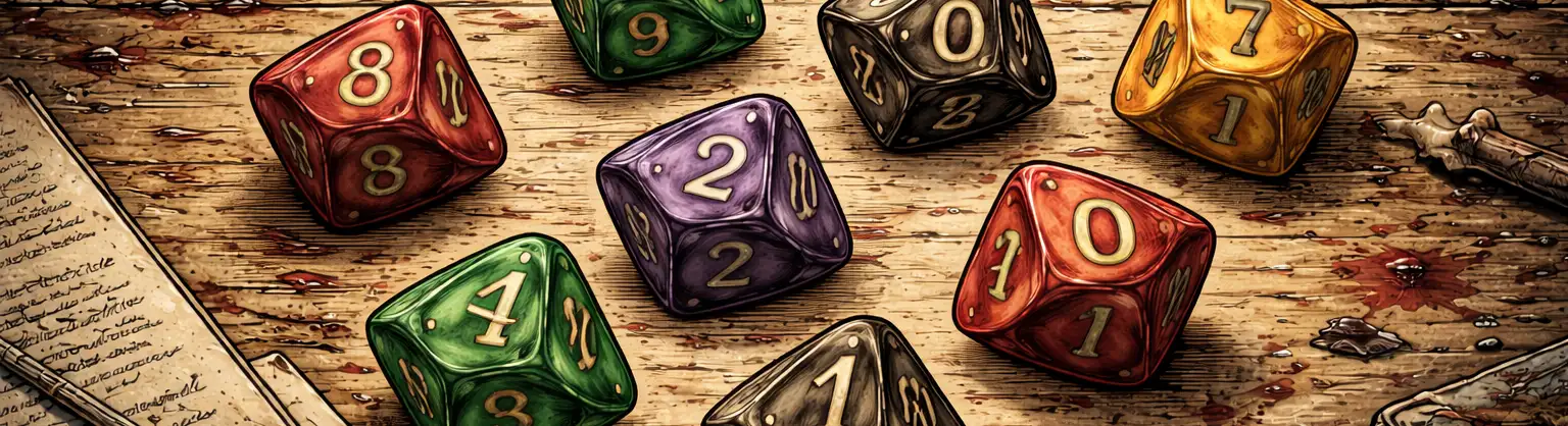 Consumed utiliza um sistema de resolução baseado em dados de dez faces (d10). Quando o resultado de uma ação é incerto, o jogador rola uma Parada de Dados.